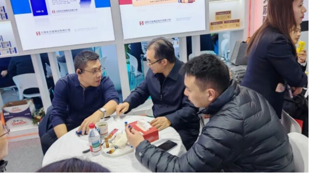本届药交会上,汉森制药携省级联盟集采产品四磨汤口服液、银杏叶胶囊,基药产品缩泉胶囊、感冒清热颗粒,特色产品天麻醒脑胶囊、百贝益肺胶囊、参七心疏胶囊参展,重磅推出汉森普药贴牌直招,吸引了众多新老客户前来交流。展台工作人员满怀激情、热忱接待,让客户了解企业与产品的同时,也为未来更加深入合作奠定了基础。